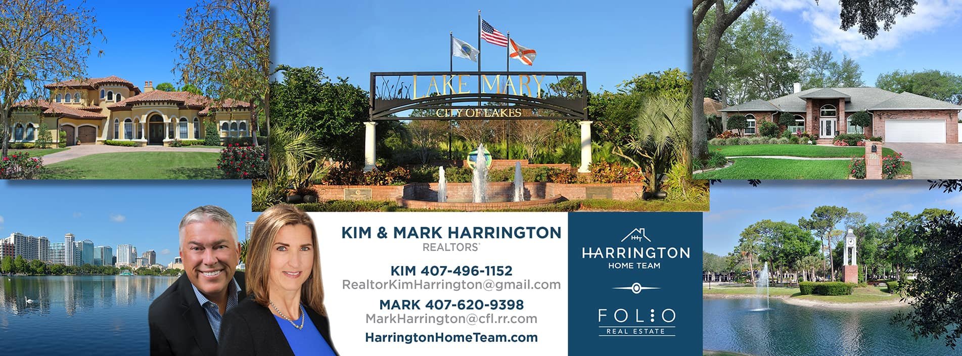 Welcome to our website! We would LOVE to help you with your Real Estate needs, so here’s a little introduction from us…When you work with Kim and/or Mark, of the Harrington Home Team, you are in the hands of two of the Most Professional, Knowledgeable & Friendly Real Estate Teams in the Orlando marketplace. In representing both buyers and sellers for over 20+ years, they have the knowledge and proven success to give each client a competitive advantage,because they know the locations & the lifestyle each unique neighborhood provides. Kim & Mark pride themselves on their client responsiveness and innovative solutions that allow transactions to reach successful outcomes. Their track record for quickly selling clients' homes, and uncanny success in finding their buyers the perfect property, are constantly praised in numerous of 5-star reviews online. They also have an impressive history of selling many of their own listings to their own buyers, which provides another distinct advantage to clients who work with them. “Our clients trust us because we know the market & we work to be the very best at every aspect of the real estate process.... pricing, marketing, advertising, negotiating, financial & lending knowledge and follow up." Their work ethic and knowledge of the market truly puts them at the top. With over 1OOO+ homes sold; they have helped many achieve their real estate dreams. Specializing in Seminole County real estate in the areas of: Lake Mary (where they live), Longwood, Sanford, Winter Springs, Oviedo, Altamonte Springs & Casselberry, and in Orange County with cities such as Winter Park, Maitland, Apopka, Lake Nona & the UCF area, they know Central Florida well and help dreams come true.